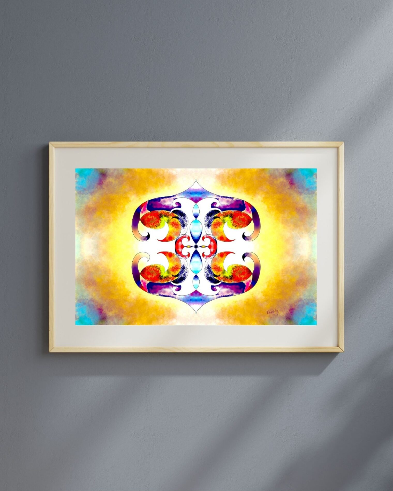 Available in multiple sizes, this art print adapts to various environments—from minimalist interiors to expressive, colorful spaces. Whether you’re drawn to abstract art, symmetrical design, or radiant palettes, this piece brings freshness and sophistication to your space.